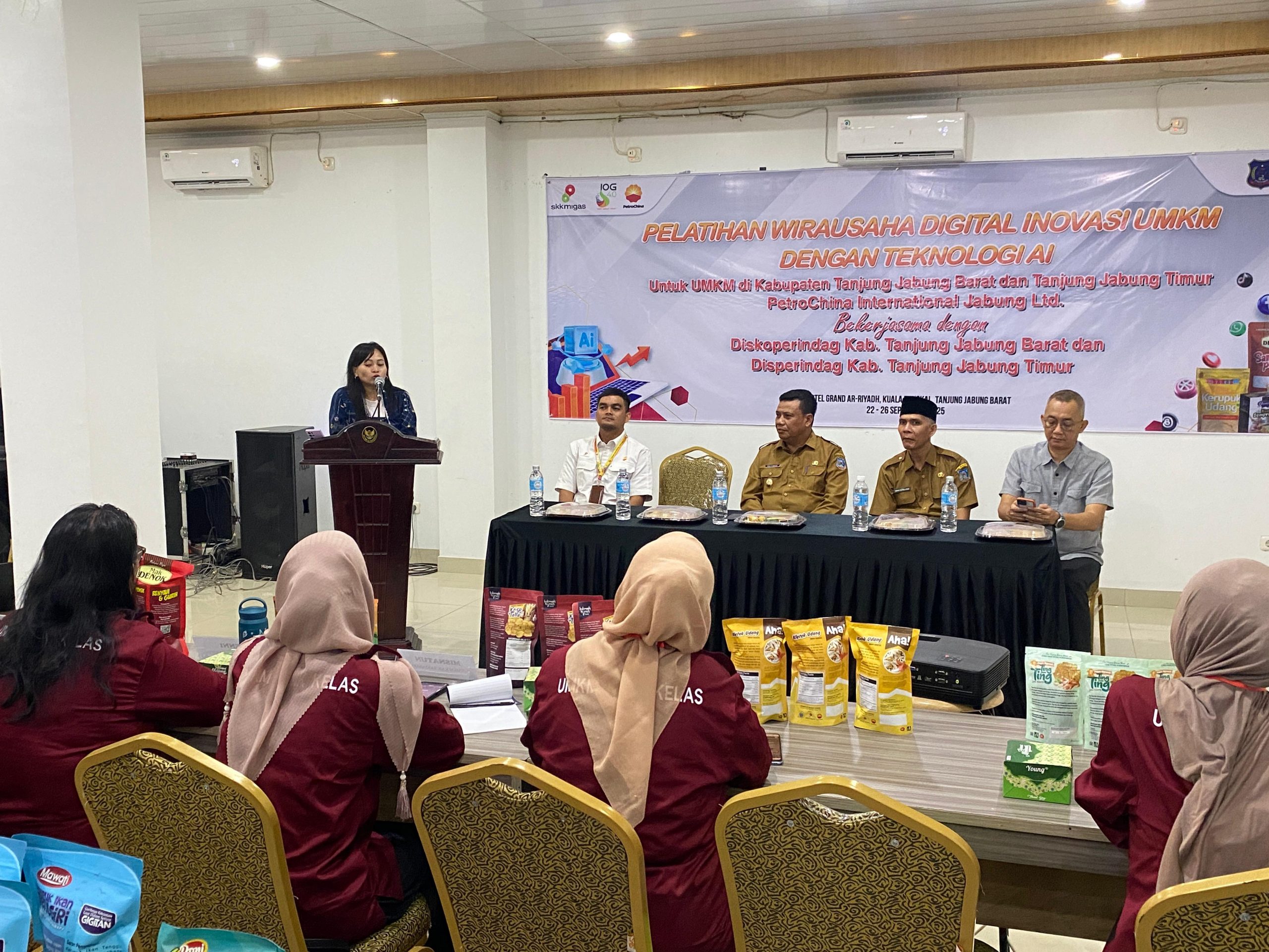 JARIJAMBI.COM, TANJAB BARAT — Dalam Upaya Meningkatkan Kualitas Usaha Mikro Kecil dan Menengah (UMKM), SKK Migas – PetroChina International Jabung Ltd bekerjasama dengan Pemkab Tanjab Barat dan Pemkab Tanjab Timur Menggelar Kegiatan “Pelatihan Wirausaha Digital Inovasi UMKM Dengan Teknologi Artificial Intelligence (AI).