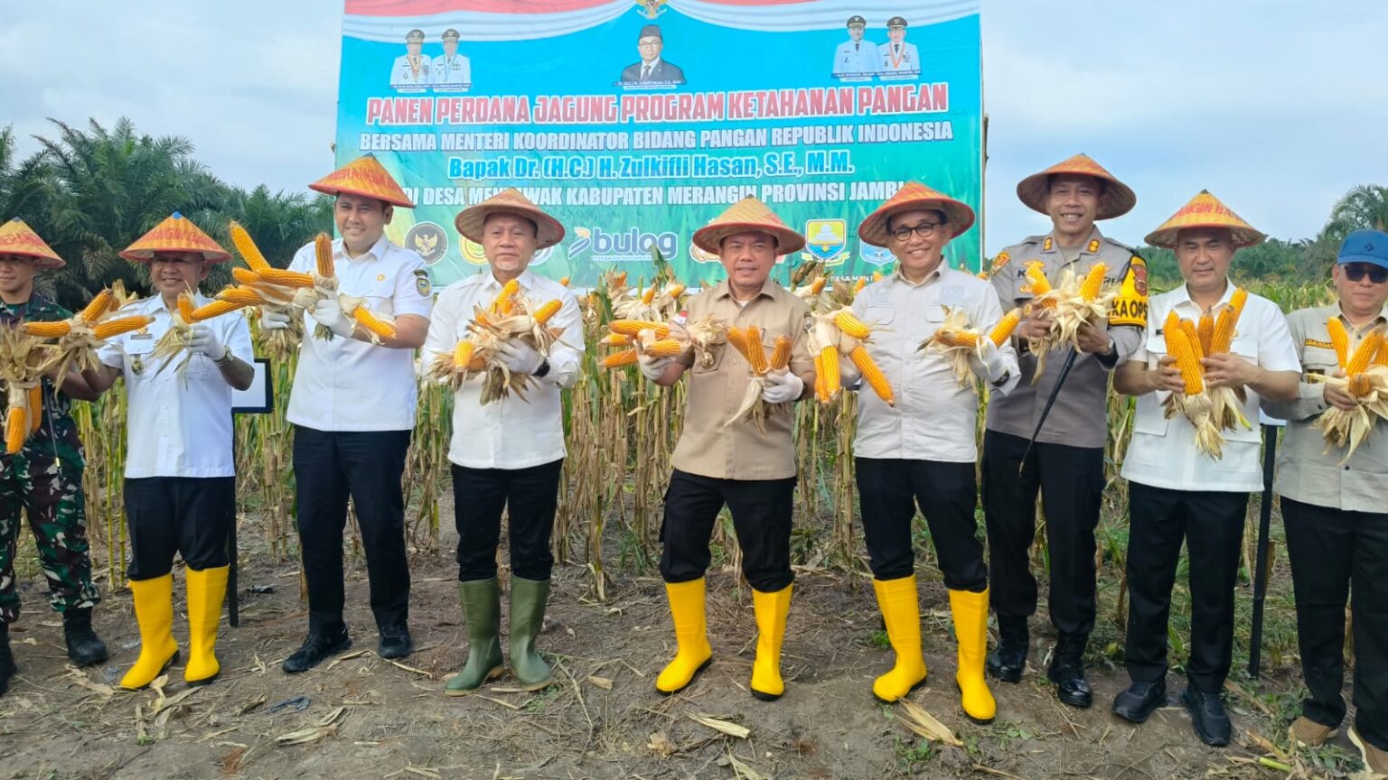 Panen jagung tersebut turut dihadiri anggota DPR RI A. Bakrie, Gubernur Jambi Al Haris, Bupati Merangin M. Syukur, Wakil Bupati Merangin Khafid, serta jajaran TNI, Polri, dan para petani setempat.