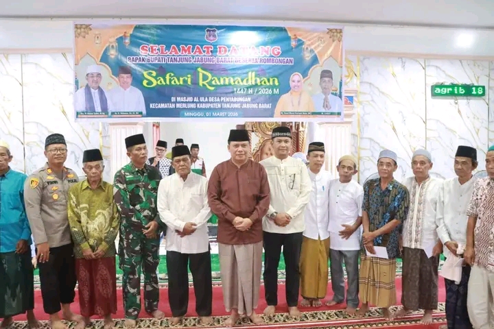 JARIJAMBI.COM, TANJAB BARAT – Pemerintah Kabupaten Tanjung Jabung Barat menggelar Safari Ramadan di Masjid Al-ULA, Desa Penyabungan, Kecamatan Merlung, Minggu (01/03). Kegiatan ini menjadi ajang silaturahmi sekaligus penyampaian program pembangunan kepada masyarakat.