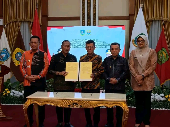 JARIJAMBI.COM, JAMBI — Gubernur Jambi (Al Haris) dan Gubernur Kepulauan Riau (Ansar Ahmad) menjajaki kerja sama strategis berupa Penandatanganan Kesepakatan Bersama antara Pemerintah Provinsi Jambi dengan Pemerintah Provinsi Kepulauan Riau tentang Kerjasama Penyelenggaraan Urusan Fasilitas Pengembangan Pariwisata dan Ekonomi Kreatif serta Kebudayaan terutama terkait pengelolaan bersama objek wisata Pulau Berhala. Kolaborasi ini bertujuan meningkatkan konektivitas dan potensi ekonomi antarprovinsi di Sumatera, termasuk potensi pasar ekspor ke Singapura melalui Kepri.