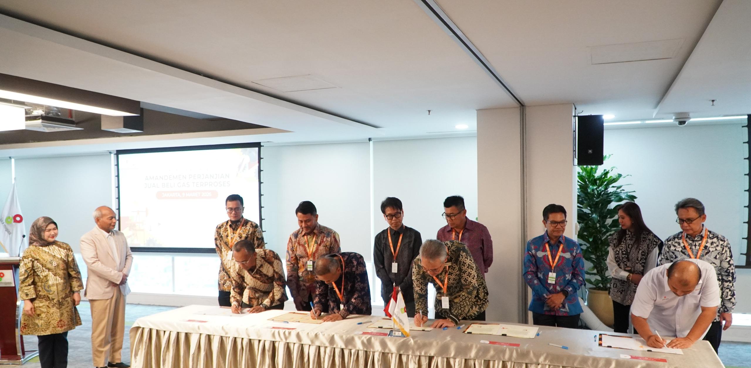 JARIJAMBI.COM, JAKARTA — Kontraktor Kontrak Kerja Sama (KKKS) serta pembeli gas terproses menandatangani lima (5) amandemen perjanjian jual beli gas terproses (PJBG Terproses). Penandataganan amandemen PJBG terproses ini disaksikan Kepala SKK Migas, Djoko Siswanto, serta Deputi Keuangan dan Komersialisasi SKK Migas, Desti Melanti, di Jakarta, Senin (9/3).